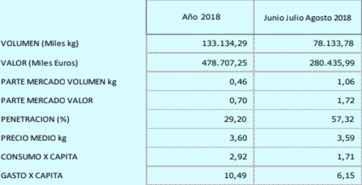 En valor, los hogares destinaron 478,7 millones de euros a la compra de este producto, de los que 280,4 millones se gastaron en verano.